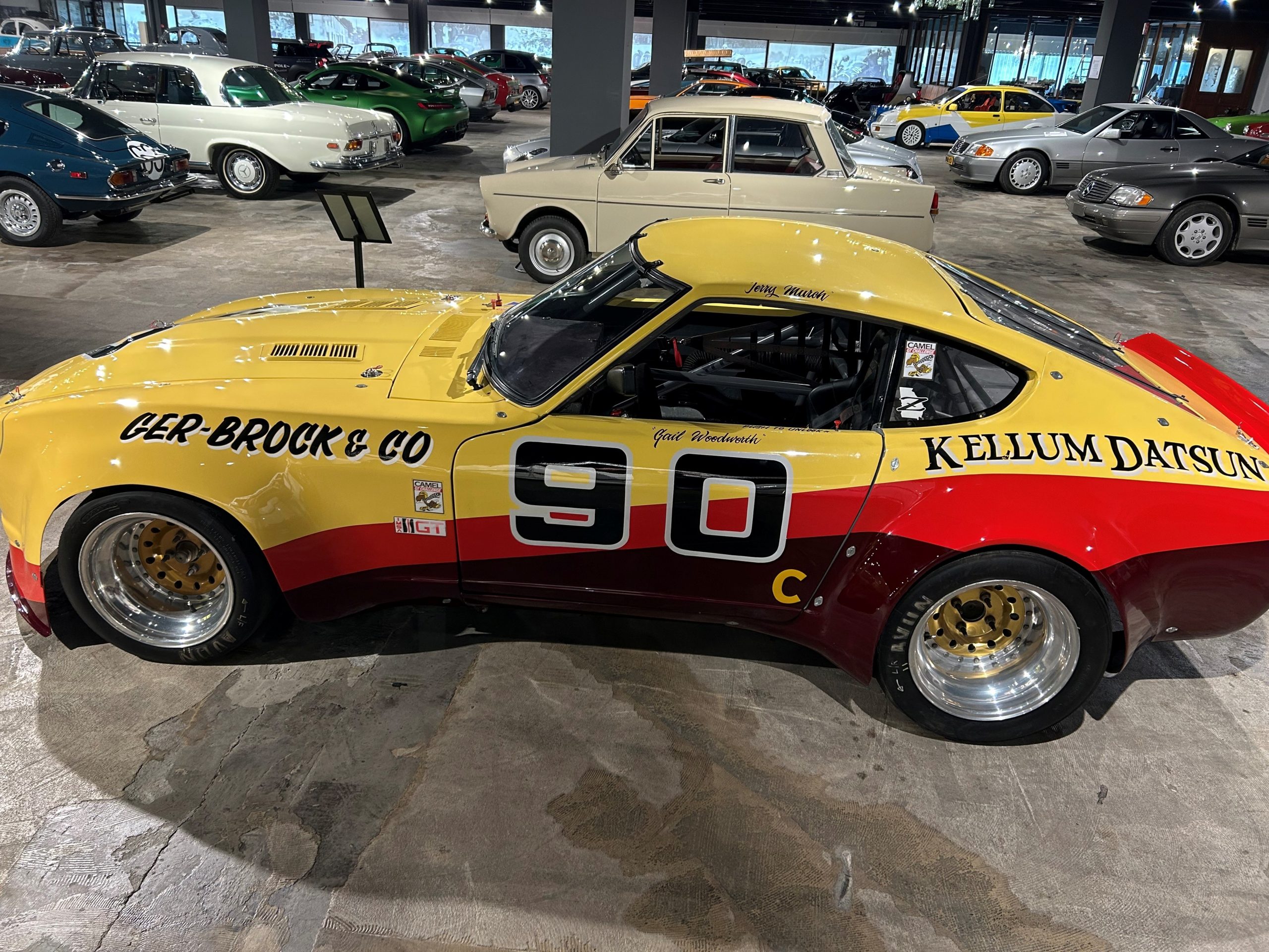 Deze historische Datsun 240Z IMSA/Trans Am-auto heeft een interessante racegeschiedenis. Ger-Brock Racing uit Portland, Oregon bouwde deze 240Z op basis van een ‘carrosserie in het wit’ die in 1974 van Datsun werd ontvangen. Hoewel er sprake was van een 240Z, was de carrosserie geconfigureerd als een 280Z in racetrim. Quickor Engineering uit Beaverton, OR en Brock Racing Enterprises (BRE) uit El Segundo, Californië hebben bijgedragen aan het ontwerp en de constructie van de auto. De auto werd voornamelijk bestuurd door Gerald (Jerry) Murch, terwijl Gail Woodworth er in het begin mee reed in enkele amateurevenementen.