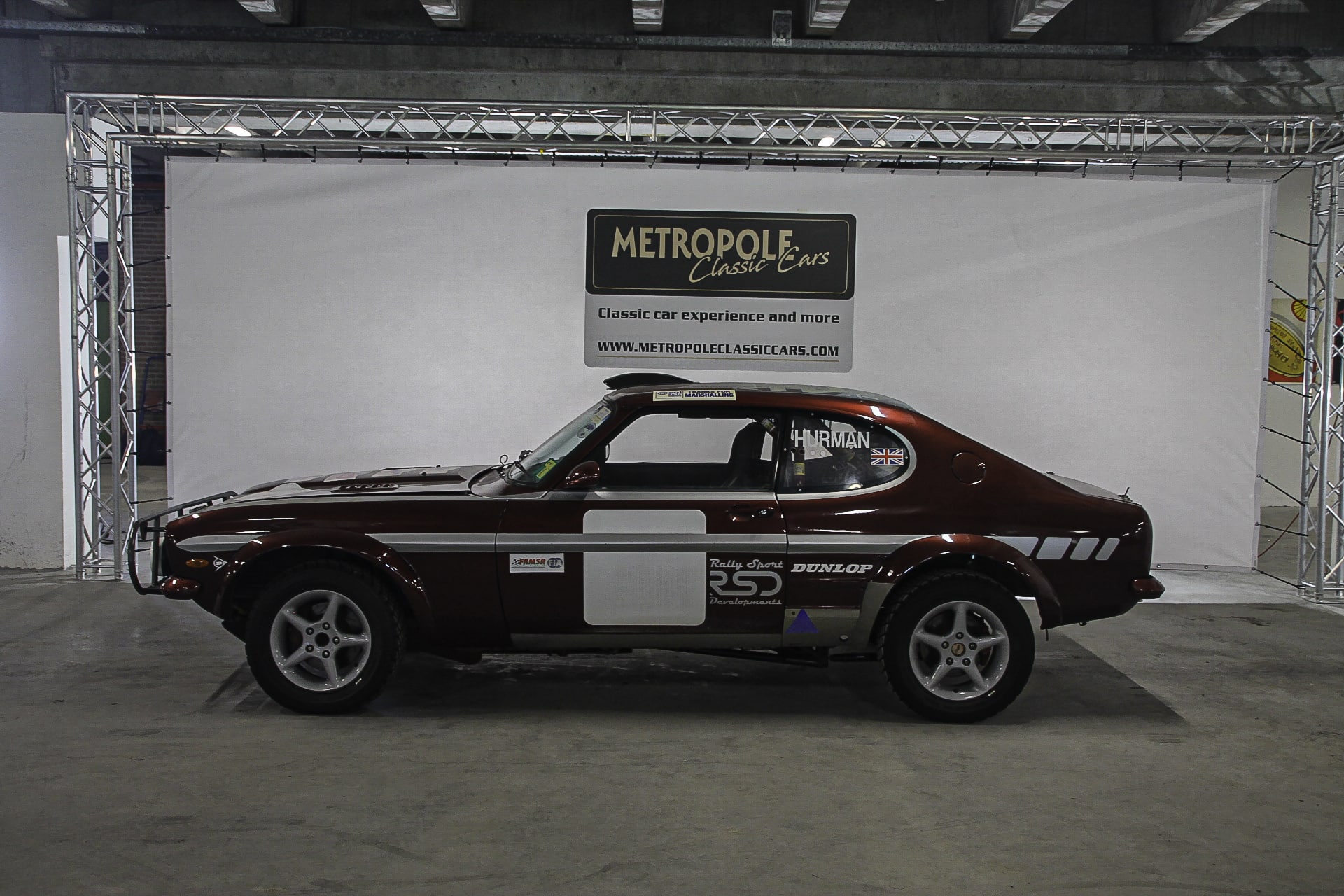 Deze Capri Mk1 naar full house Perana-specificatie kostte meer dan 200.000,- Australische Dollars (ongeveer € 135.000,-) om te bouwen in 1999, voordat hij de 2000 London-Sydney Rally won onder leiding van voormalig wereldkampioen Rally Stig Blomqvist en navigator Ben Rainsford. Sindsdien heeft de Marathon-rally coupé deelgenomen aan verschillende andere langeafstandsevenementen. Onder andere de 2004 London-Sydney Rally, 2004 Carrera Sudamericana Marathon, 2007 Classic East African Safari Rally, 2010 International Rally du Maroc en de Sol Rally Barbados in 2011.
