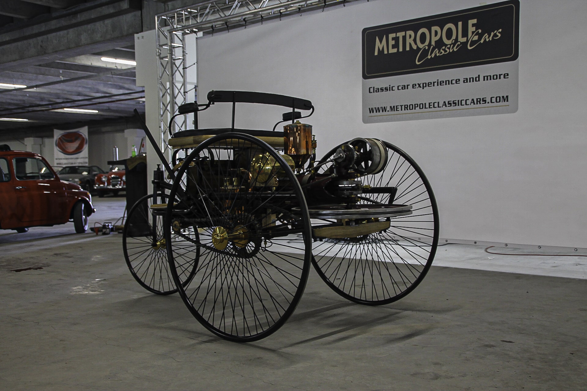 MB patenteerde zijn motorwagen in 1886 en deed zijn eerste officiële proefrit door Mannheim in juli van dat jaar.