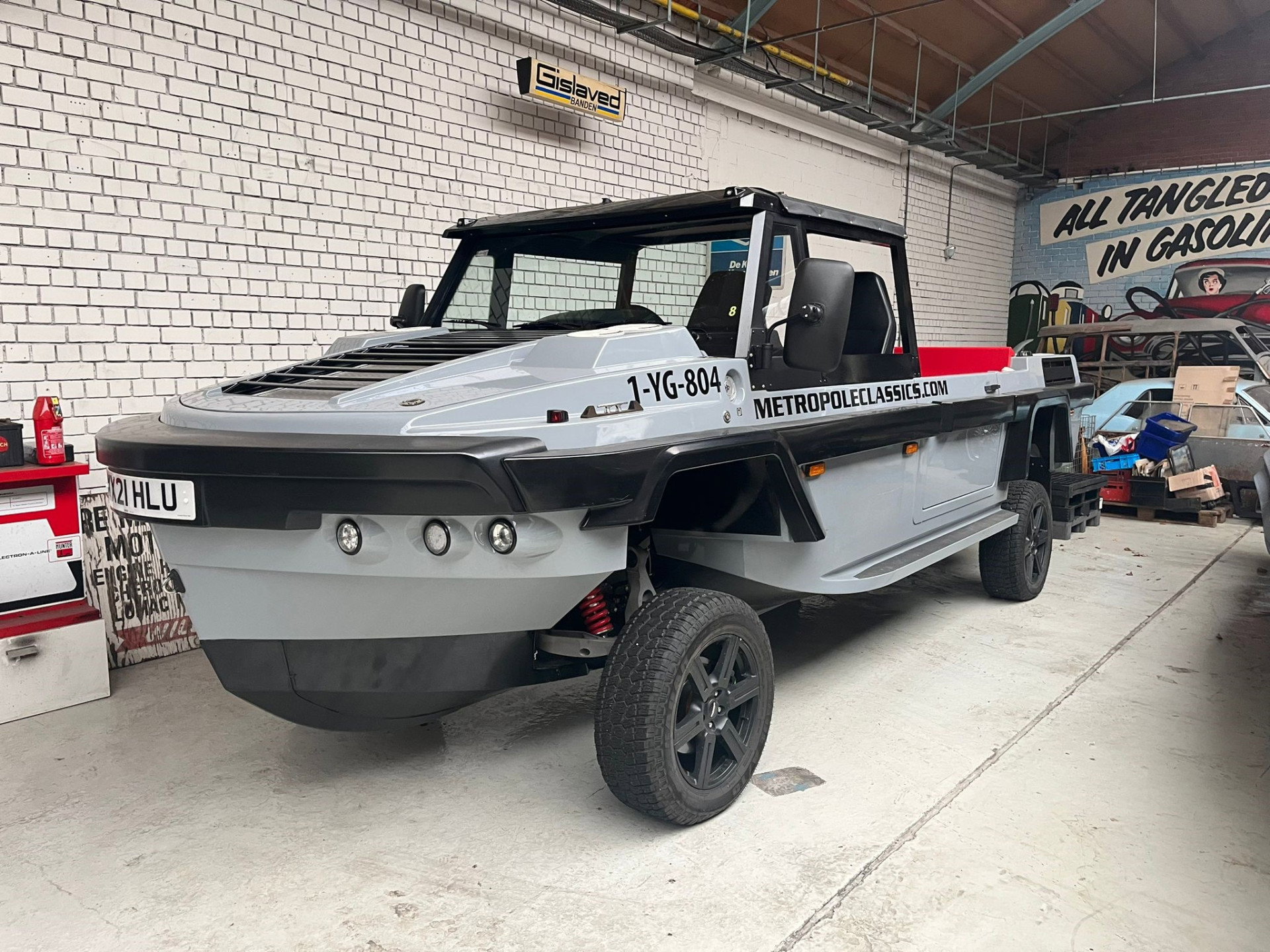 This machine is orginal built by gibbs, and is only factory hours and testing, we made extra special seats for it, it has bluetooth radio system, and extr option sliding windows for the cabine, brandnew in the box. The car has european ( german) papers. and dutch water registration.