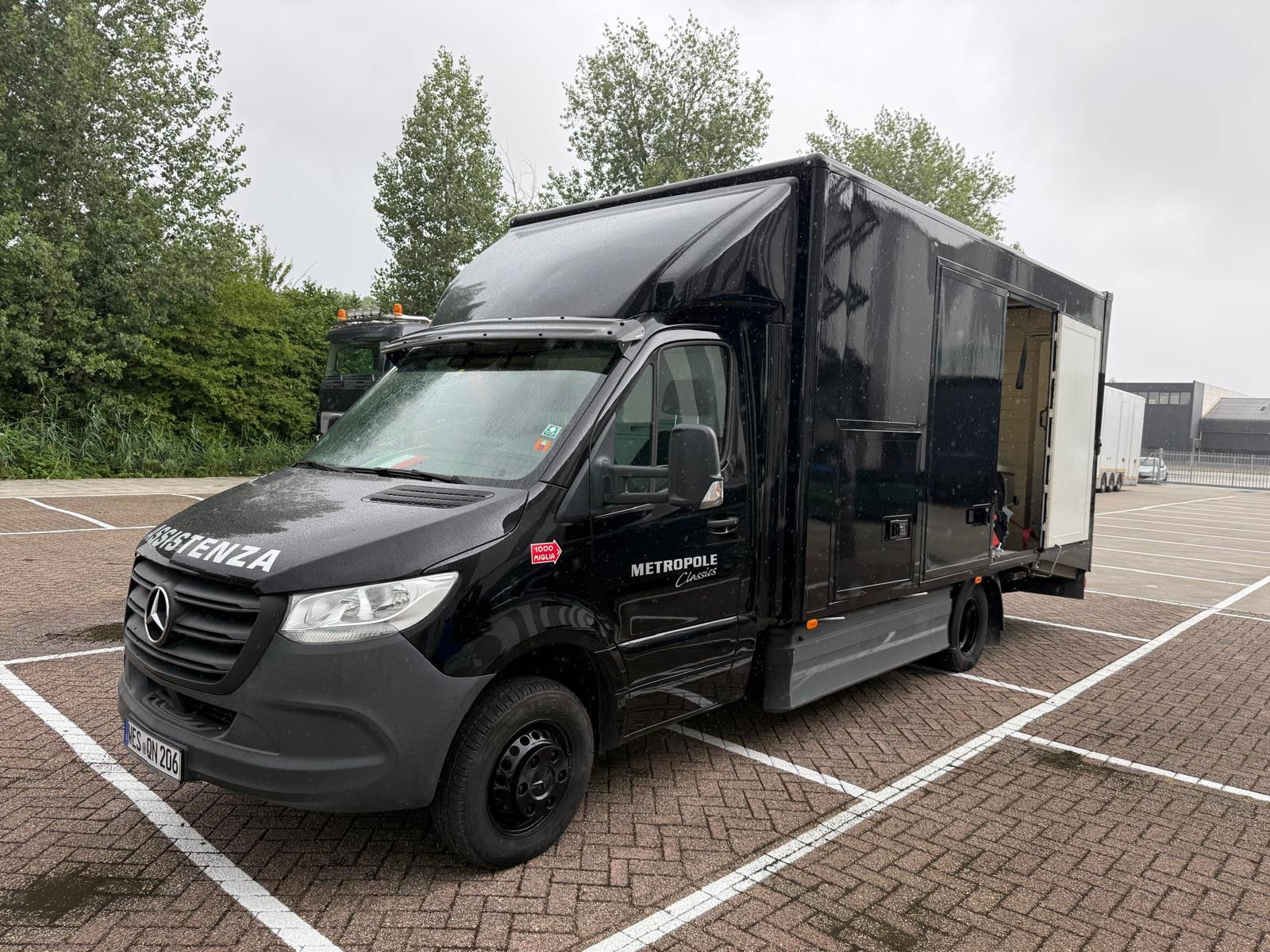 Deze Sprinter is in uitstekende staat en recent volledig zwart gespoten, wat hem een strakke en verzorgde uitstraling geeft. De bus heeft bijzonder weinig kilometers gelopen en alles functioneert nog zoals het hoort.