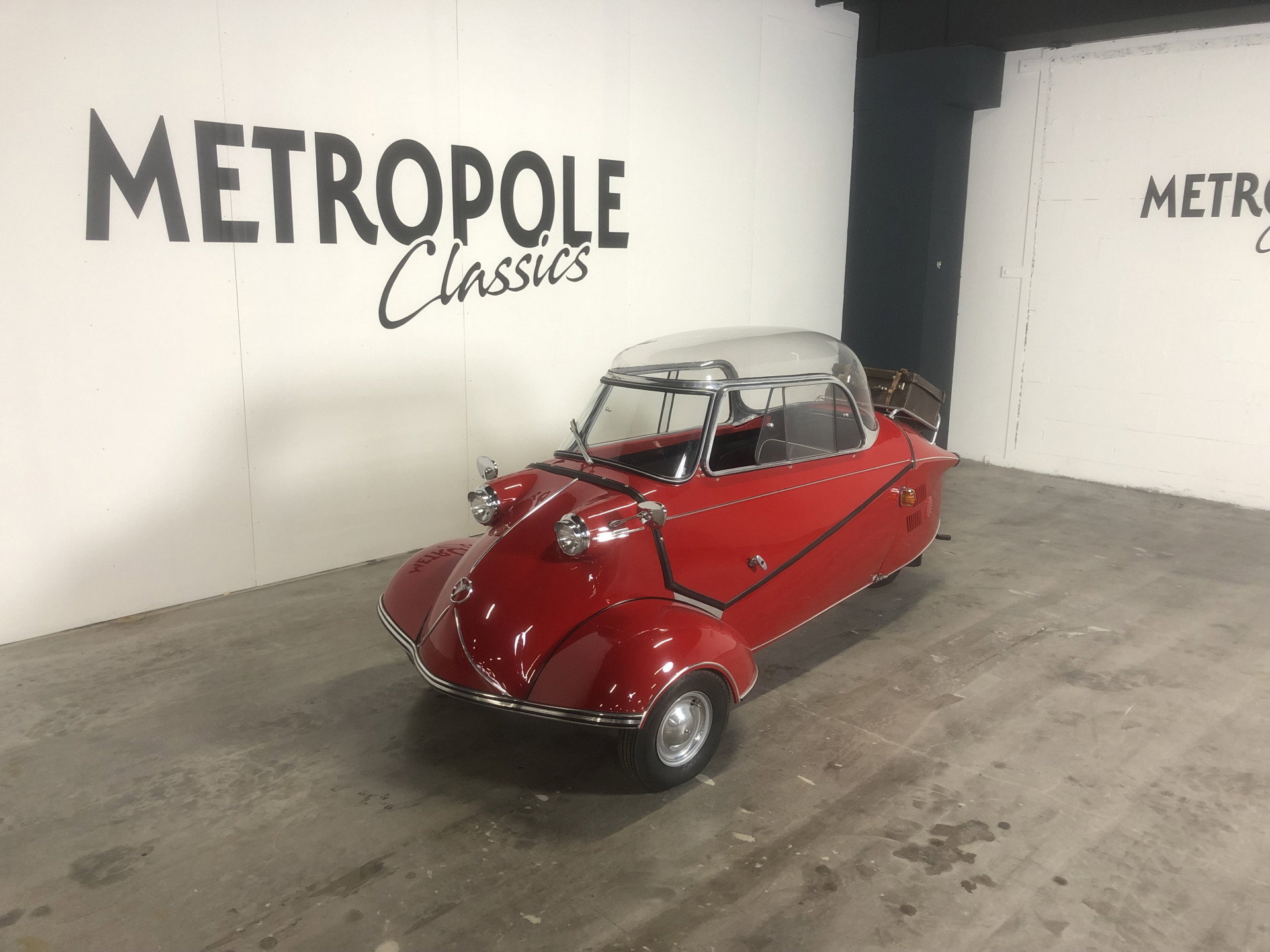 Met een klein beetje beschadigde dome top en origineel bagagerek in chroom. De Messerschmitt is in zeer goede staat. Hij is met grote zorg volledig gerestaureerd, trouw aan het origineel en met originele onderdelen. De restauratie, die zo'n 15 jaar geleden is gedaan, is professioneel en vakkundig uitgevoerd. Rood met een zwart interieur. Volledig operationeel en heel leuk om te rijden. Je hebt meer bekijks dan in een Ferrari. Incl. Duits kenteken