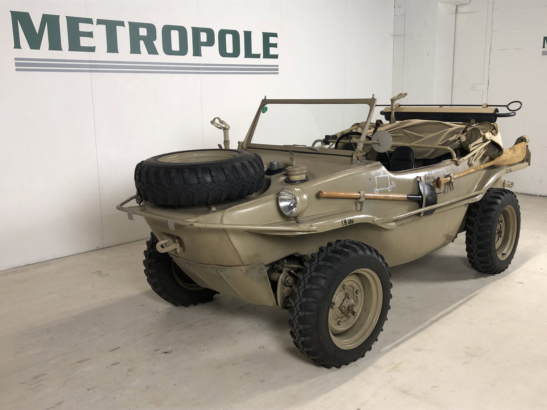 Deze hier gepresenteerde Schwimmwagen is een zeer originele waarbij alle nummers kloppen. Hij komt uit Noorwegen en staat nog Noors kenteken. Verder zit er nog een Volkswagen certificaat bij. Deze auto is vanaf de WW2 in Noorwegen gebleven, en vanaf 1981 bij dezelfde eigenaar, geweldige patina, en rijdt zeer goed.